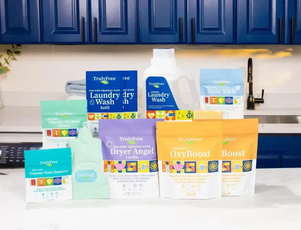 Pssst, quick note that Truly Free’s best deal right now is for the laundry room: get 100 loads of laundry free, plus their whole stain removal system, including their oxygen bleach, stain stick, washing machine cleaner, and a dryer angel to make your clothes smell amazing! All non-toxic products we adore.